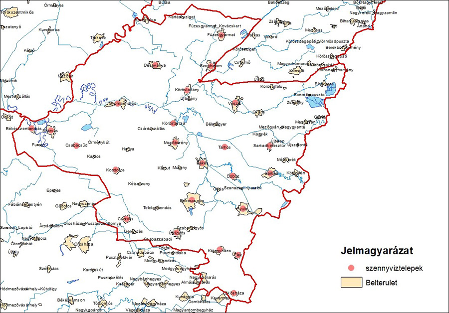 Az Igazgatóság működési területén 26 településen épült ki eddig közüzemi szennyvízgyűjtő csatornahálózat, amelyhez 24 szennyvíztisztító telep tartozik. A közcsatornával összegyűjtött, tisztított szennyvíz éves átlagos értéke az éves közműves víztermelés 82 %-át éri el. Valamennyi szennyvízcsatorna mű által összegyűjtött szennyvíz a III. fokozatú (a nitrogén, foszfor eltávolítást biztosító) tisztítást nyújtó szennyvíztisztító telepre kerül. A Körös-vidéki Vízügyi Igazgatóság működési területén a szennyvízelvezetés, tisztítás legfontosabb naturális adatait az alábbi táblázat tartalmazza.| Szennyvízteleppel kiszolgált települések száma, aránya: | 24 db (49,0%) |