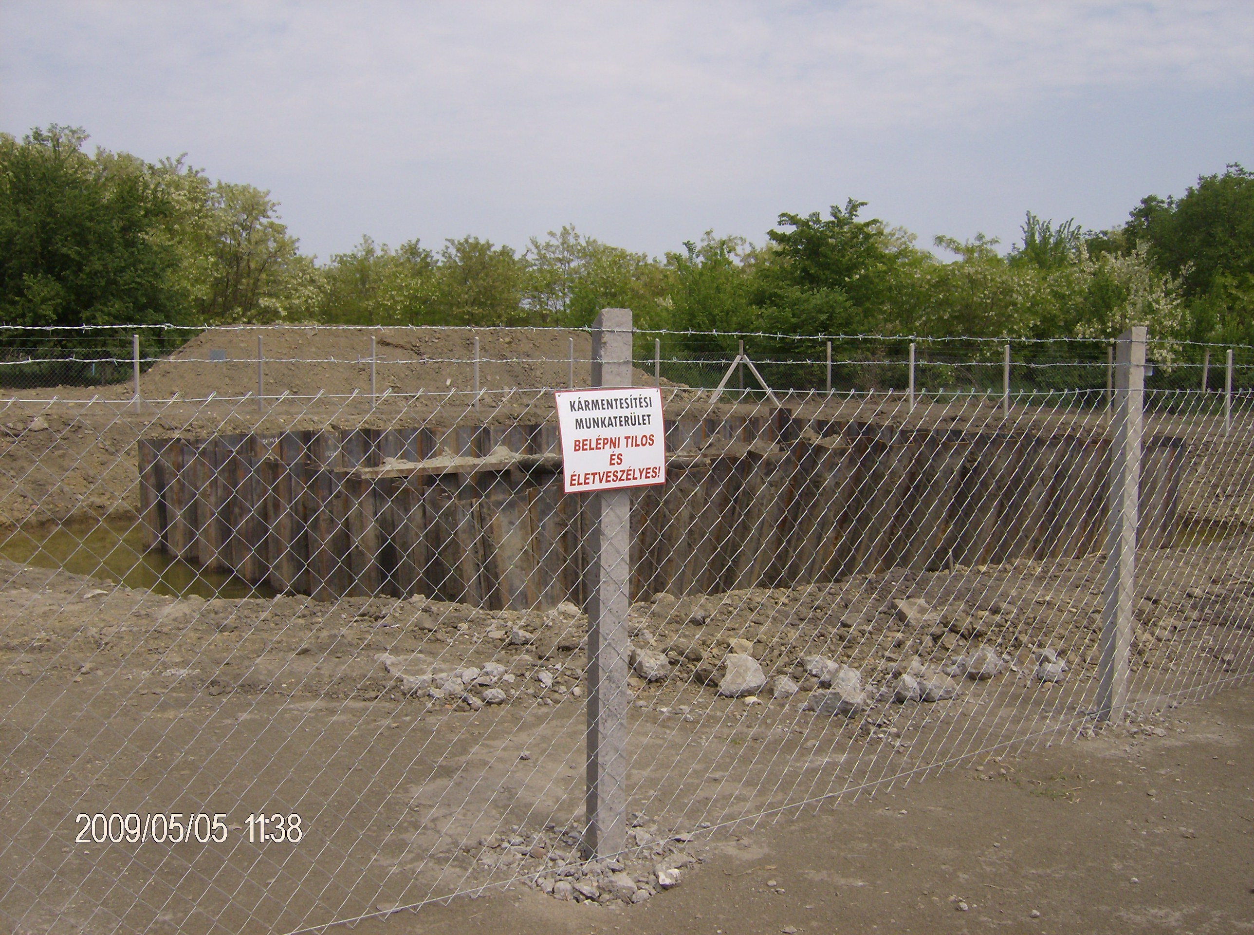 - A szádfallal védett munkagödör biztonságtechnikai körülkerítése, a munka következő ütemének megkezdéséig