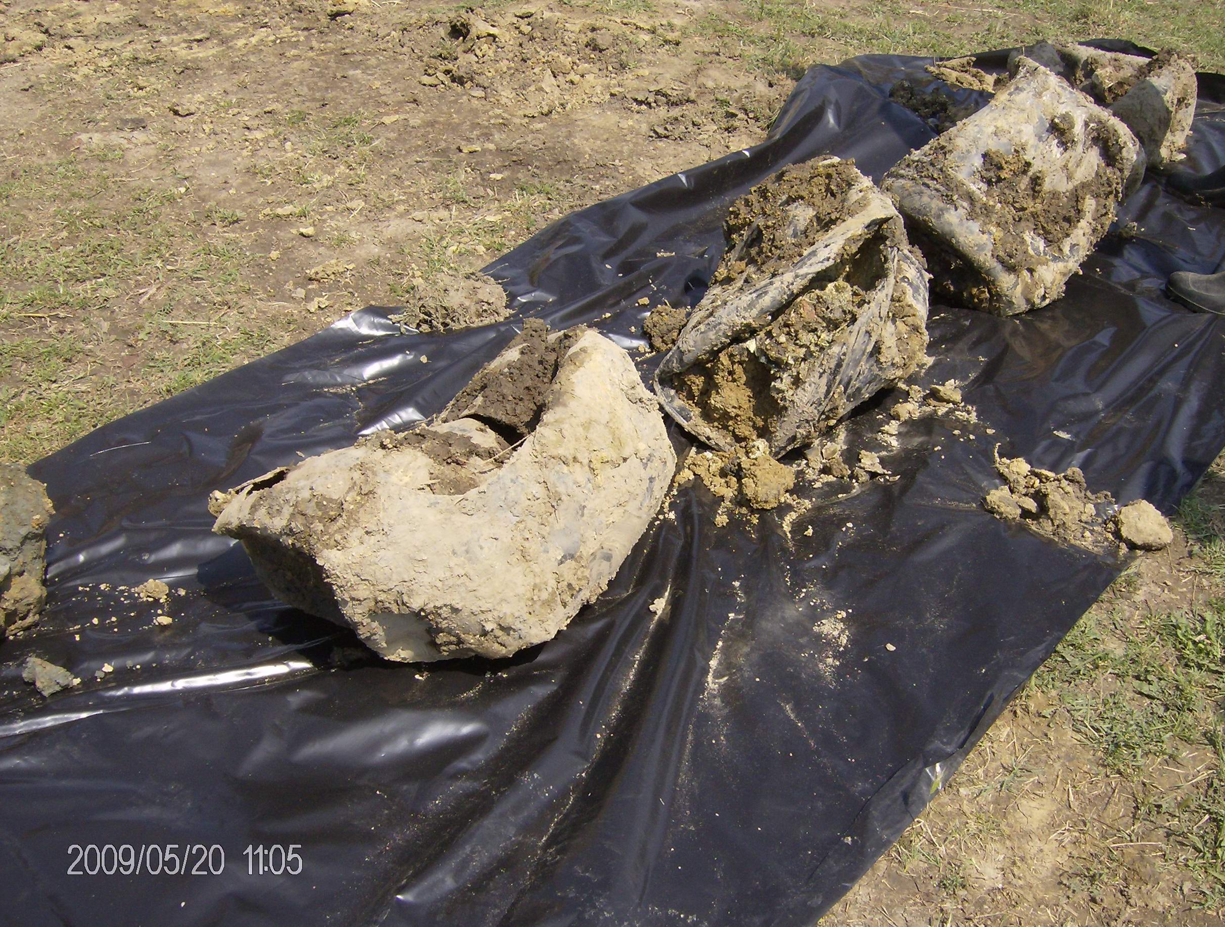 - A kitermelés során talált 4 db, növényvédő vegyszereket még tartalmazó, műanyaghordó maradványa